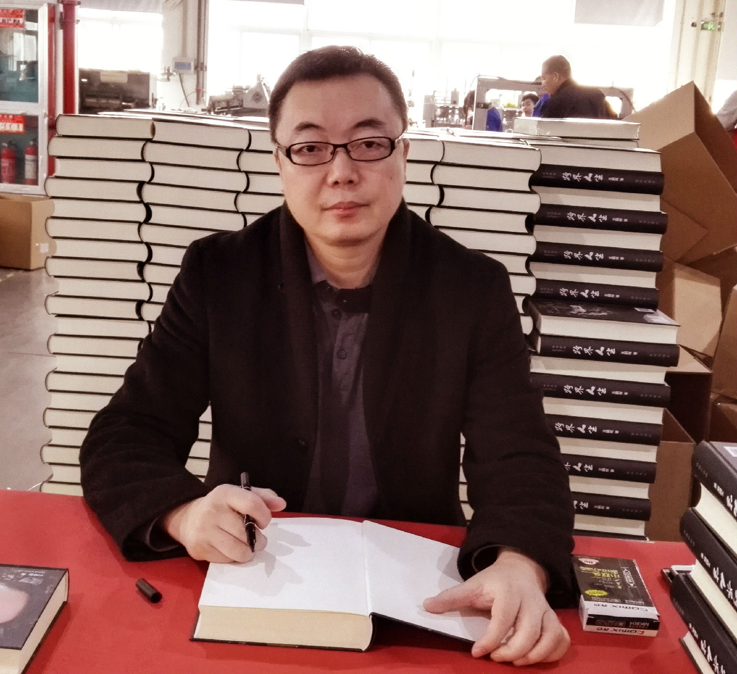 王鵬輝老師在杭州印刷廠海虹彩印生產(chǎn)現(xiàn)場簽字