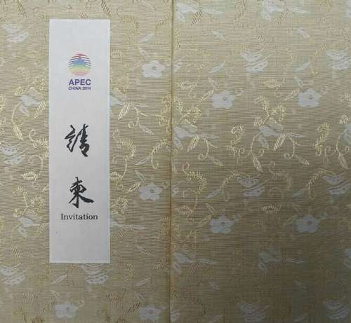APEC20個(gè)成員經(jīng)濟(jì)體的領(lǐng)導(dǎo)人,都會(huì)收到東道主中國(guó)發(fā)來(lái)的一張請(qǐng)柬,這張米黃緞面、云錦圖案的請(qǐng)柬,正面以行楷體書(shū)寫(xiě)的“請(qǐng)柬”二字,出自年逾9旬的上海書(shū)畫(huà)大師陳佩秋之手。