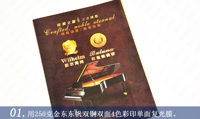 封面用350克寧波雙銅正面光膠,燙亮銀。內(nèi)頁用300克雙銅紙雙面4色彩印,黑色鐵絲圈裝。