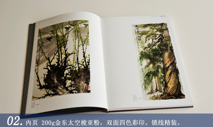 封面用薩瓦娜布燙亞金,環(huán)襯用150克CSP特種紙,內頁用180克水晶特種紙雙面4色彩印,鎖線精裝+盒裝。